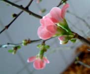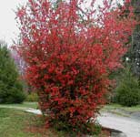 Red Ochna, Japanese Flowering Quince - This hardy plant produces red flowers whose shape is